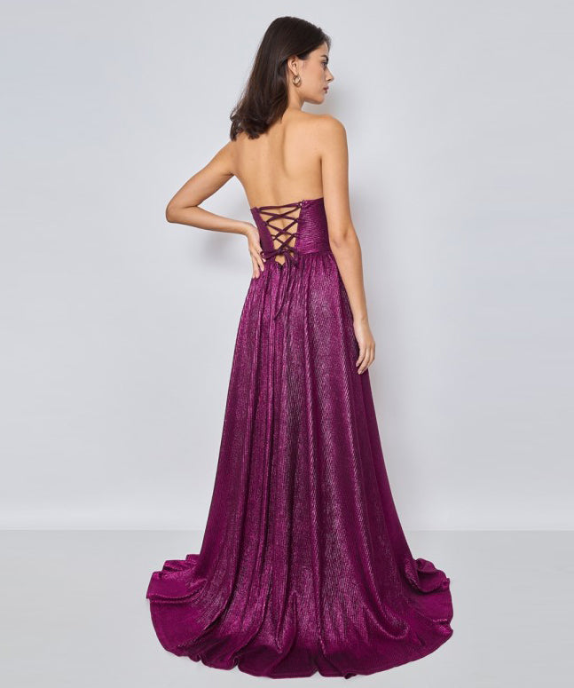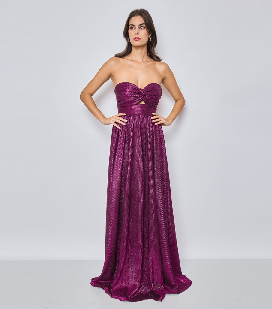Abito lungo in fili di lurex scollo a cuore con corpetto allacciato dietro