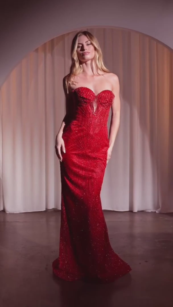 Illumina la notte con questo sensuale abito aderente, un'accattivante combinazione di fascino ed eleganza. La scollatura a cuore senza spalline incornicia con grazia il décolleté, dando vita a un seducente corpetto trasparente con stecche con chiusura posteriore a corsetto, decorato con una cascata di perline lineari che catturano la luce a ogni movimento. è una dichiarazione di sicurezza e glamour, che ti assicura di brillare sotto i riflettori e lasciare un'impressione duratura.